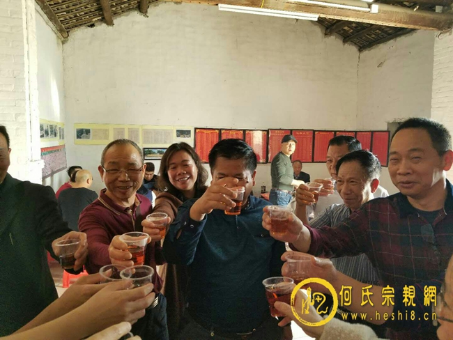 广州庐江书院文化促进会花都分会常务副会长何校沛、何应芬对前来参加老人联谊活动的花都历史研究会,祠堂研究会的领导及工作人员频频举杯,表示感谢!