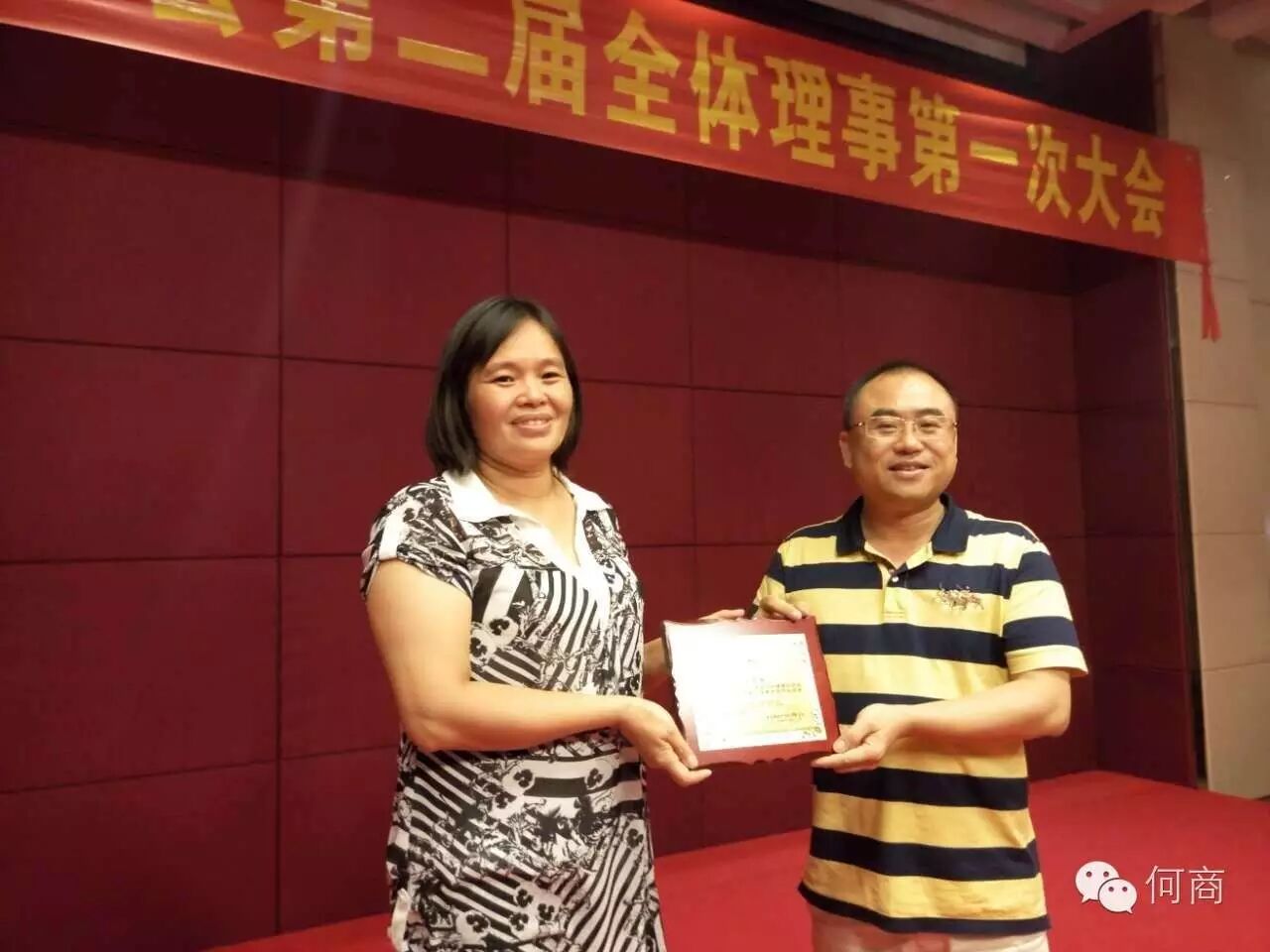 上图:常务副总会长何忠和(右)给何红莲颁发任命牌匾。