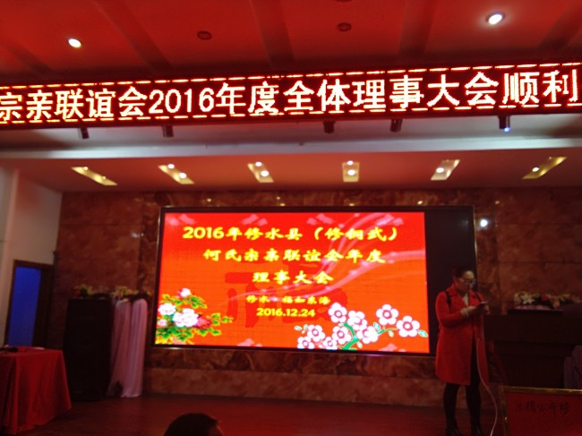 何氏宗亲网修水讯(筵明报道)12月24日,江西九江市修水县(修铜武)何氏宗亲联谊会2016年年度理 事大会,在修水县福如东海大酒店隆重召开,来自修水、铜鼓、武宁三县的200多位宗亲出席参加此次大会 。