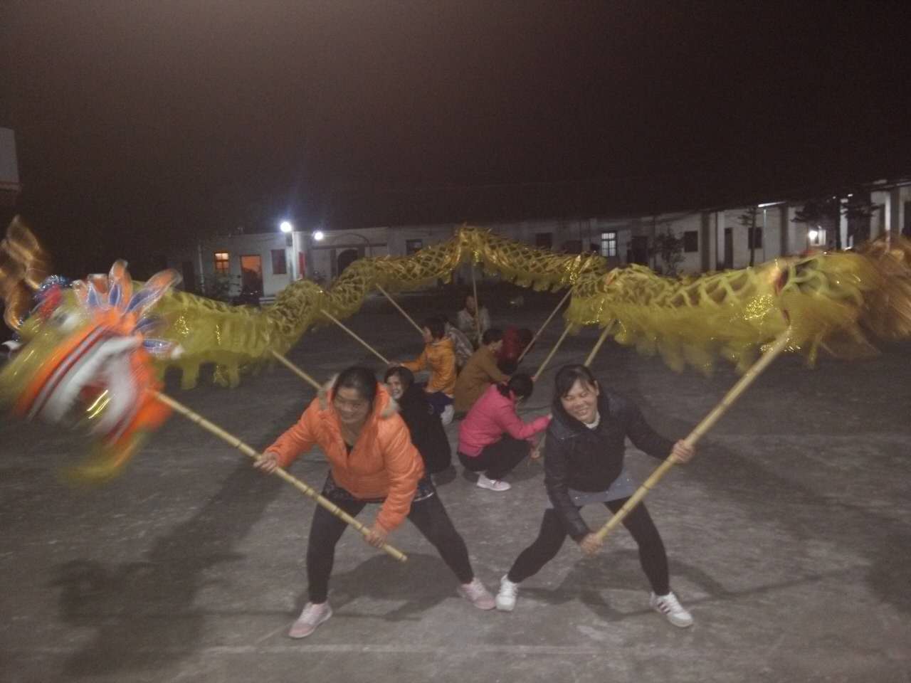 近年来,楼下龙狮队在楼下何氏理事会贵明会长,衍伟队长(龙狮队)、伟忠会长的带领下更是呈现了勃勃生机、兴旺鼎盛的大好局面。通过楼下理事会一致同意决定,楼下舞龙队精挑细选楼下籍本家媳妇组建新队伍。经过龙狮队元老和各级领导及教练对队伍的耐心教导、及队员们的勤学苦练,功夫不负有心人,一支训练有素的楼下舞龙女子铁骑队伍终于开始了龙狮编队出征,参演连平何氏大家庭的各种喜庆活动。连平何氏庐江楼2016春晚,楼下龙狮队参演并代表连平何氏联谊会接待参加春晚的嘉宾,并多次受邀参加宗亲喜庆场合,在特定场合更是代表连平何氏宗亲联谊会出征参加活动(比如参加长潭河唇乃挥公宗祠庆典),为连平何氏宗亲的各种活动立下汗马功劳,受到了连平何氏广大宗亲的一致好评。