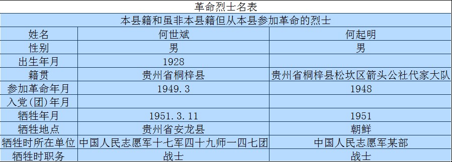 【编者按:以下表格均由何伟基根据《桐梓县志(1997年版)》制作而成。】
