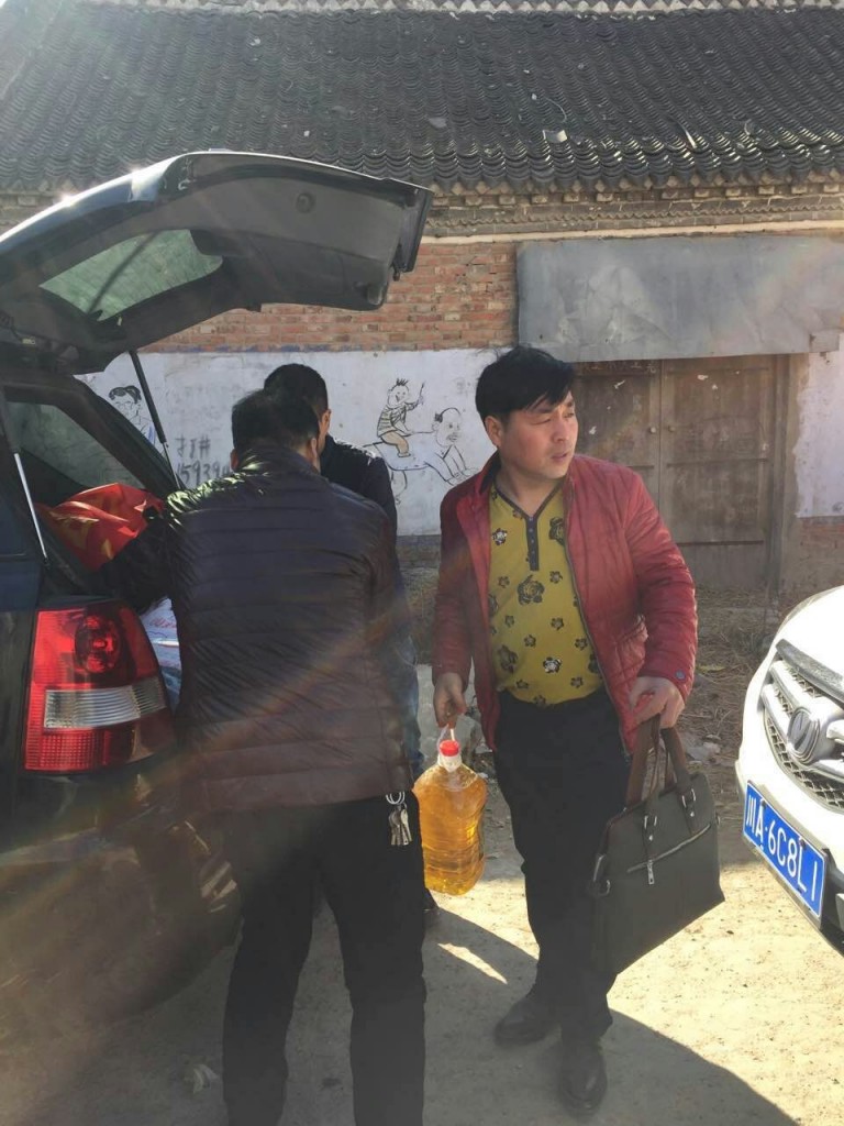 随后何其中一行人看望了何振庄一家人,并送去了米、面、油和慰问金,何振庄握住何其中的手说真没想到你们来到我家送年货,谢谢你们。何其中说了解到你们家太困难了,我给你们送来了过年的年货,希望你们过个幸福年,我以后每年会来看望你的。一行人还看望了徐洼村孤寡老人王氏,送去了年货,接着又去了夏老家丁敬库等等部分困难户,送去了年货等等。