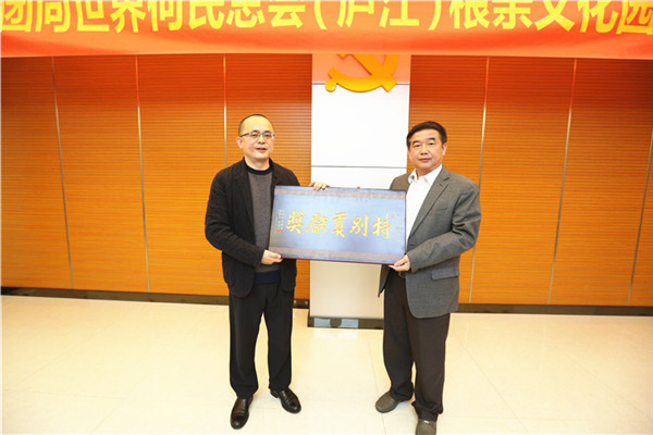 世界何氏(庐江)根亲文化园是第三、四届世界何氏总会产生以来主抓的宗亲文化建设重点工程。庐江是何氏重要发祥地之一,海内外广大何氏宗亲有深厚的“庐江情结”。以何道深为总会长的世界何氏总会,顺应海内外何氏的意愿,作出了在安徽省庐江县白湖镇建设根亲文化园的决定。庐江县委、县政府予以大力支持,无偿划拨土地支持根亲文化园建设。经过了三年多时间的努力,首期工程根亲文化馆建设已经竣工,正在布展。