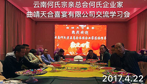世界何氏网昆明讯(何国良报道):4月22日,应云南曲靖天合喜宴董事长何泽涛的邀请,云南何氏宗亲总会组织部分何氏企业家赴云南曲靖交流学习。