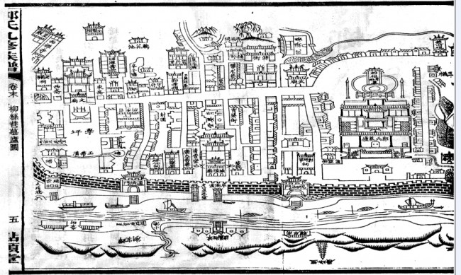 图2 湘潭县城池平面图(原载光绪十四年戊子岁1888年《湘潭县志》)
